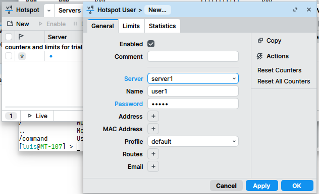 Donde el número 1 deberá sustituirse por el id de usuario arrojado por el comando /user print.